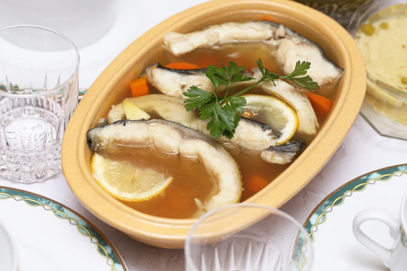 - Jeśli nie masz głów/kręgów i chcesz mocną galaretę - użyj żelatyny, ale pamiętaj: nie przesadź z ilością (ryba ma „pływać” w lekkiej galarecie, nie w żelu).