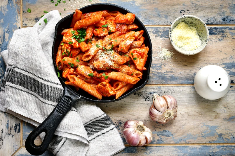 - W wersji wysokobiałkowej użyj makaronu z ciecierzycy lub soczewicy.