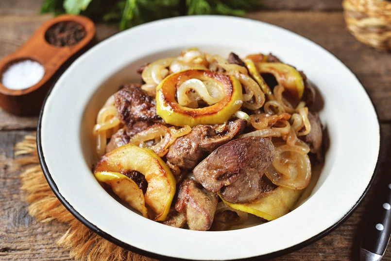 Brak pomysłu na obiad? Oto nasza propozycja - wątróbka drobiowa z jabłkiem