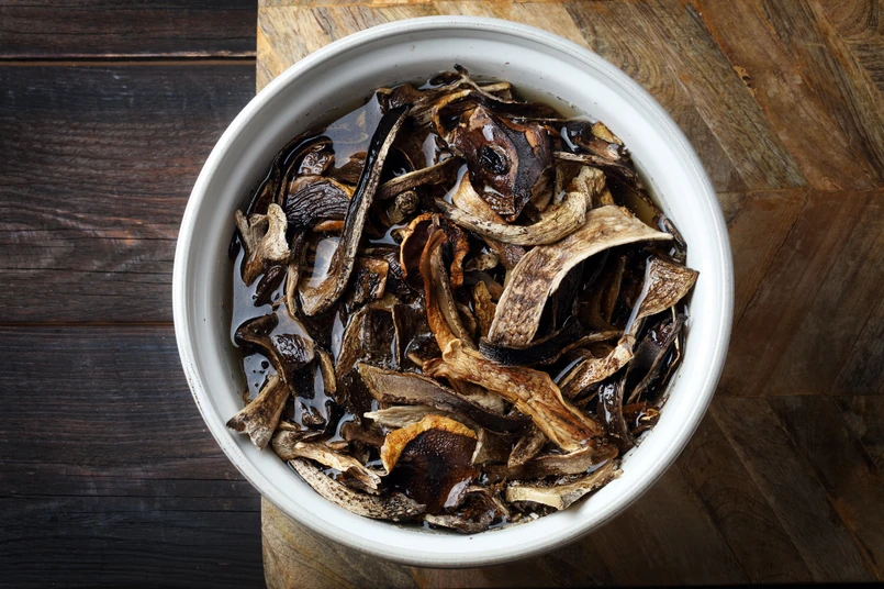 Najważniejsze jest ich odpowiednie moczenie. To podstawa, by nie straciły aromatu oraz smaku. Grzyby, które kupimy w sklepie, nie muszą być ani myte, ani płukane. Najlepiej zalać je letnią, ale nie gorącą wodą, tak aby je tylko lekko zakryć. Gorąca woda może sprawić, że stwardnieją. Zalane letnią wodą, należy wstawić na noc do lodówki. Do wody warto wrzucić listek laurowy.
