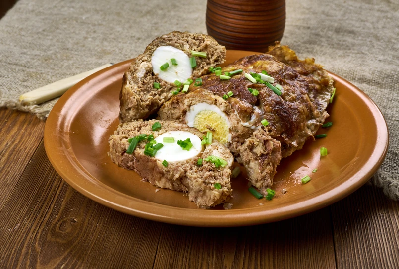 Dzięki jajkom pieczeń jest efektowna i sycąca, a masa mięsna pozostaje soczysta.