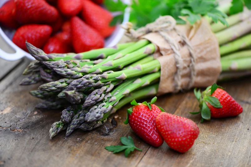"Odłam twarde końcówki szparagów. Blanszuj szparagi przez 2,5 minuty w osolonej wodzie. Przełóż szparagi do miski z lodowatą wodą. W miseczce zmieszaj składniki winegretu. Podpraż orzeszki na gorącej, suchej patelni, dolej trochę balsamico, mieszając podpraż krótko orzechy aż się skarmelizują. W misce wymieszaj rukolę i szpinak z winegretem, przełóż na półmisek. Ułóż na sałatach pokrojone w ćwiartki truskawki i szparagi, posyp poszarpanymi listkami bazylii i mięty i skarmelizowanymi orzechami. Grande finale: wjeżdża jej wysokość bufala. Możesz ją poszarpać ręcznie, albo majestatycznie położyć na zielono czerwonym tronie" - taki przepis podała Hanna Lis w swoim poście.