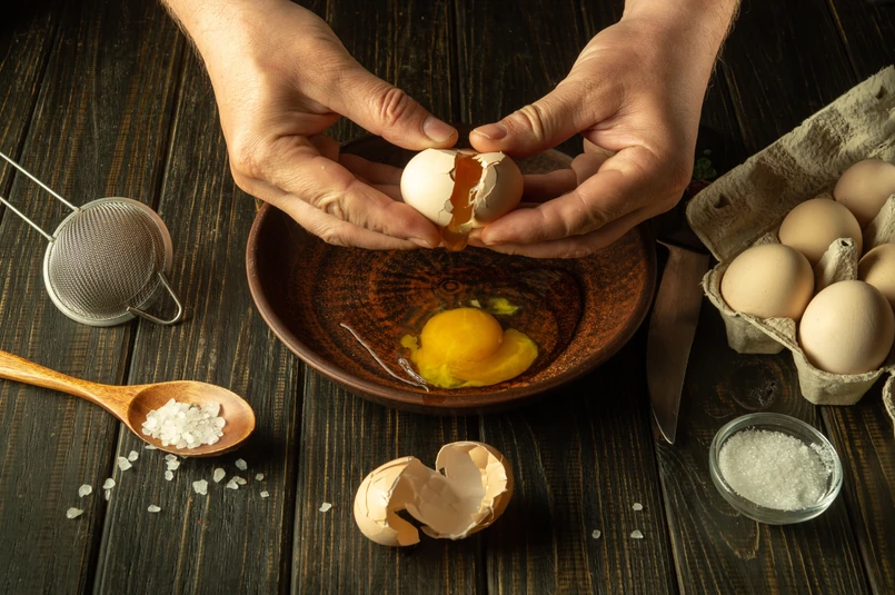 Okazuje się, że wielu z nas popełnia nie jeden a nawet kilka błędów podczas smażenia jajecznicy. Jednym z nich jest solenie jajek w postaci surowej. Sól posiada właściwości, które "wyciągają" wodę z jaj i sprawiają, że posolona przed smażeniem będzie sucha i bardzo zbita. Lepiej, więc dodać ją pod koniec albo posolić dopiero na talerzu.