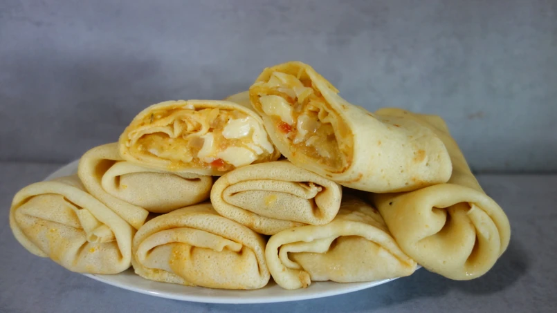 Dodajemy starty ser i mieszamy. Na naleśniki nakładamy farsz, składamy i podajemy na gorąco bądź też zapiekamy na patelni lub w piekarniku.