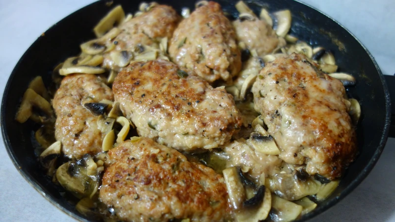 Obsmażamy na rozgrzanym tłuszczu, dodajemy pieczarki.