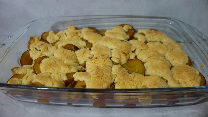 Śliwki kładziemy do formy 30x21 cm, a na nie wykładamy ciasto.