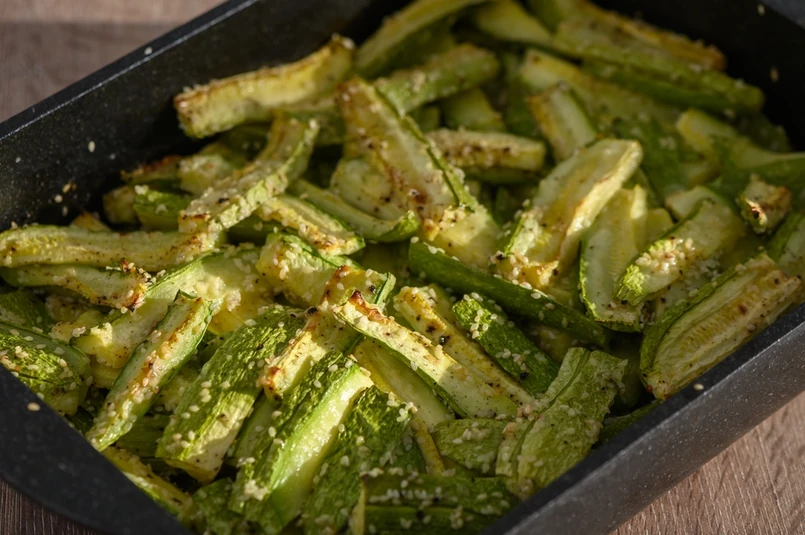 Pokrojona w słupki, odpowiednio doprawiona cukinia zamieni się w pyszne danie. Do frytek z cukinii z piekarnika wybierajmy cukinię mniejszą. Jej miąższ jest bardziej zwarty i ma mniej wody. Jeśli mamy duże cukinie, pozbawmy je po prostu gniazd nasiennych.