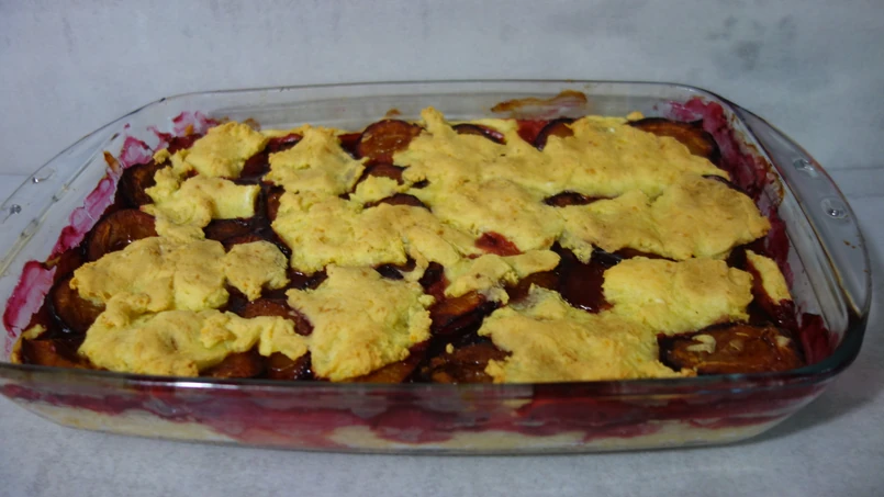 Jedną część wykładamy do naczynia żaroodpornego wysmarowanego masłem. Na masie ziemniaczanej układamy śliwki. Przykrywamy pozostałą masą.