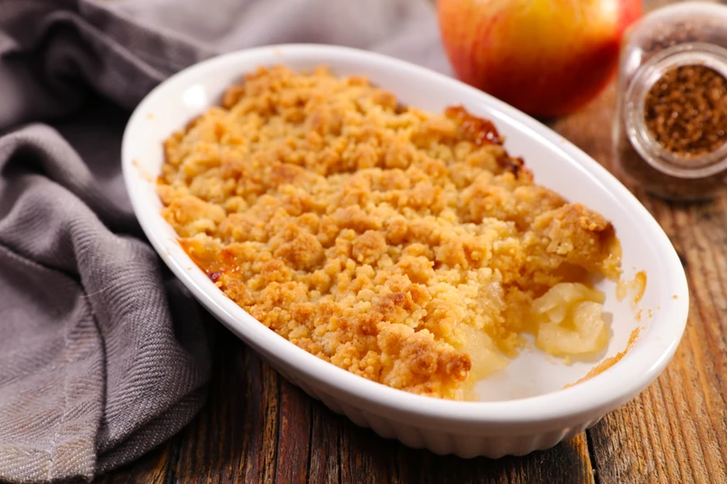 Crumble, bo tak nazywa się ten jesienny, ale przede wszystkim mało kaloryczny deser, to nic innego jak ciasto, które nie ma spodu. W oryginalnej wersji przygotowuje się je z kruszonki na bazie masła. Jeśli jednak jesteśmy na diecie i nie chcemy przesadzić z kalorycznością deseru, mąkę pszenną zamieńmy właśnie na płatki owsiane.