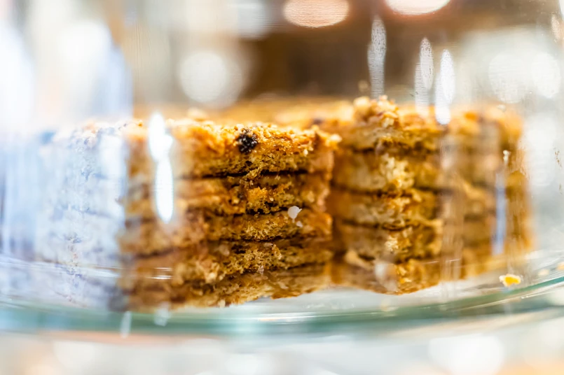 Miodownik z budyniem orzechowym. Ciasto na rodzinne spotkania
