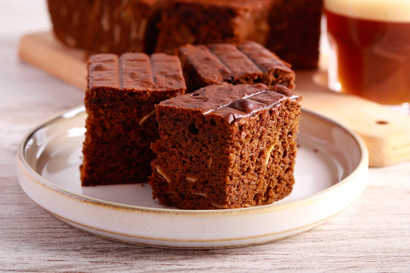 Sekretem ciasta piernikowego z jabłkami jest połączenie tartych jabłek z korzennymi przyprawami oraz skarmelizowanych orzechów. Dzięki temu miksowi jest wilgotne i bardzo aromatyczne.