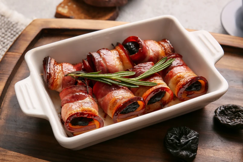 Jak je zrobić? Oto przepis na pieczone śliwki w boczku.