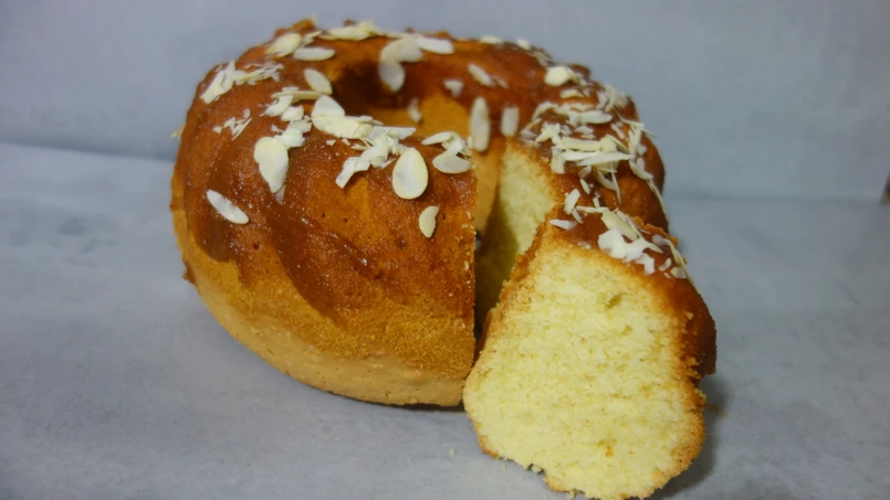 Wierzch babki smarujemy dżemem i posypujemy migdałami.