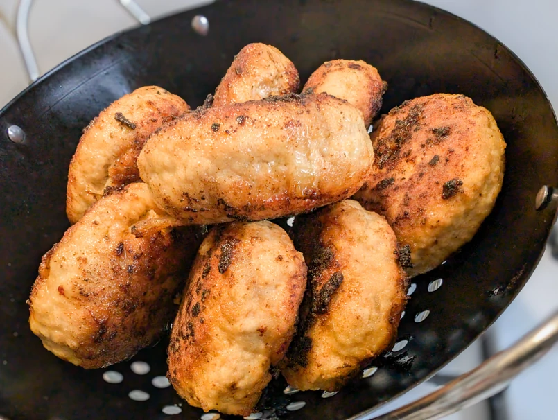 - Małej wielkości kotlety panierować w bułce tartej i smażyć na rozgrzanym oleju.